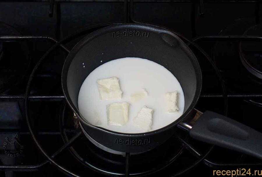 Тем временем поместите молоко и масло в сотейник или небольшую кастрюлю.