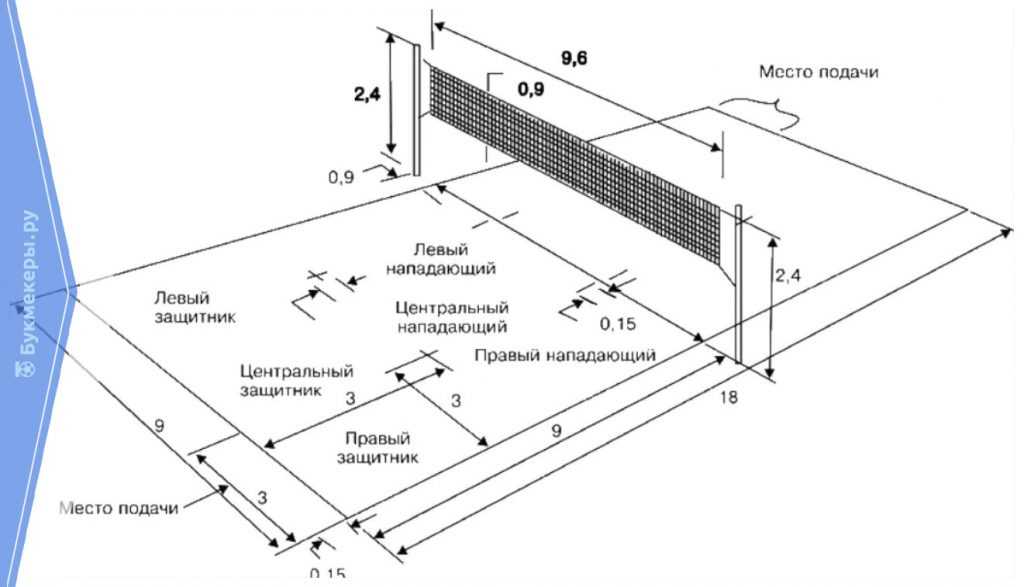 Игра в волейбол проводится на площадке не менее 18х9 метров. В профессиональном спорте имеет значение даже высота сетки, через которую перекидывают мяч: для мужчин она составляет 2,43 метра, а для женщин – 2,24 м.
