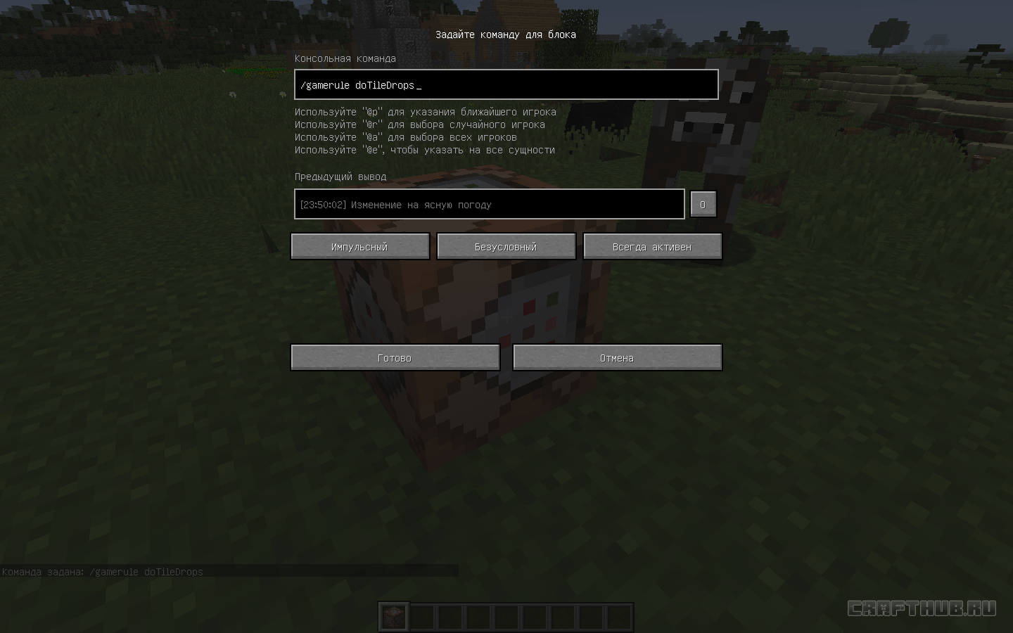 | commandBlockOutput | Включает/отключает ввод текста в КБ |