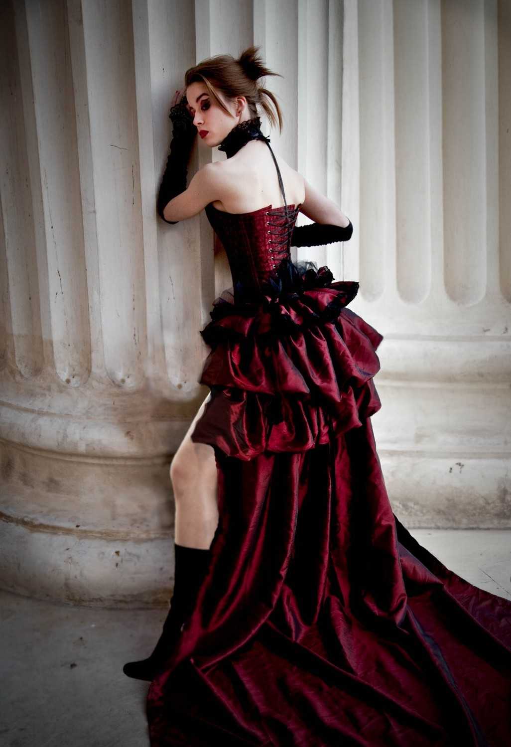 - Кружевные платья. Готическая культура начала зарождаться еще несколько десятилетий назад, в те времена, когда было модно носить кружевные пышные платья. Такие платья модно носить и сейчас. Особенно их предпочитают японки, выбирающие стиль «готическая лолита». Платья могут иметь длину выше колена и макси-длину. Длинное кружевное платье станет прекрасным украшением готессы на званом вечере. Короткие платья девушки-готы могут носить с ботильонами и сапогами черного цвета со шнуровкой.