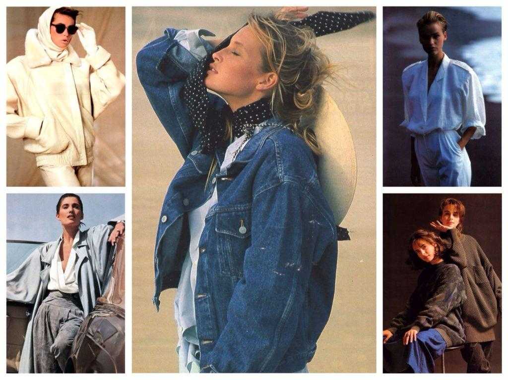 Модный парень обязан был иметь в гардеробе широкие джинсы, объемные свитера, кожаную куртку и поистрепавшиеся кроссовки. Пиджаки с широкими плечами комбинировались с джинсами и даже спортивными штанами. Эти дуэты никого не удивляли, а смотрелись довольно органично.