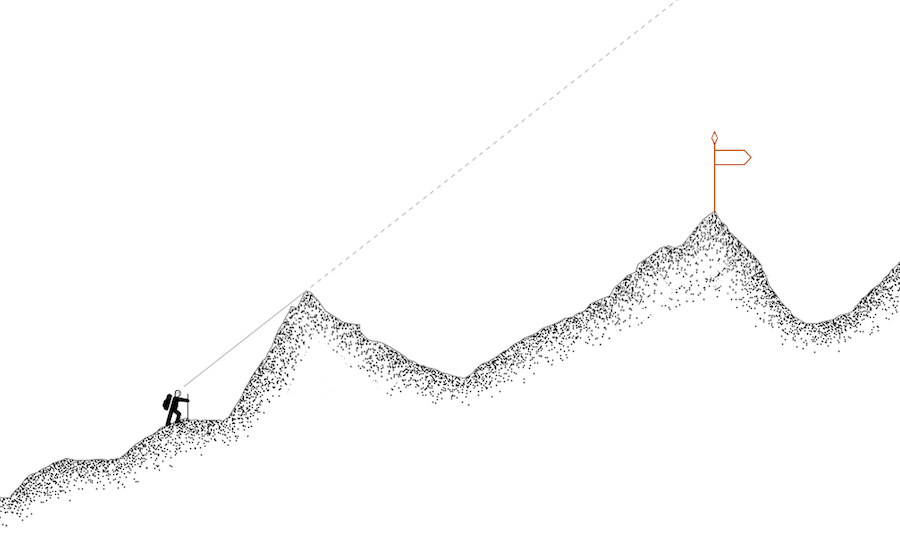 Обучение как проект. Продуманный план помогает учиться и расти. Представьте свое образование в виде большого проекта с небольшими этапами. Для такого проекта в Бюро Артема Горбунова придумали метафору иллюзии альпиниста.