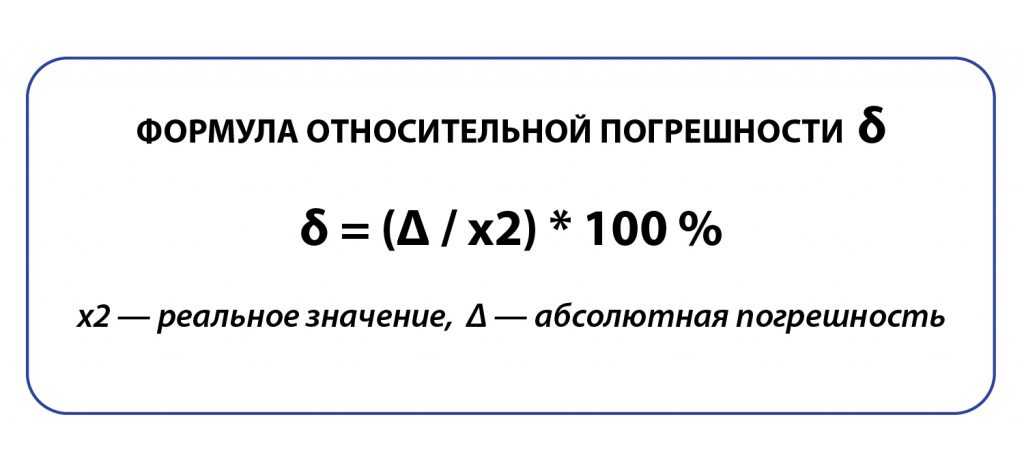 Формула использует значение абсолютной погрешности и вычисляется в процентах по отношению к фактическому значению.