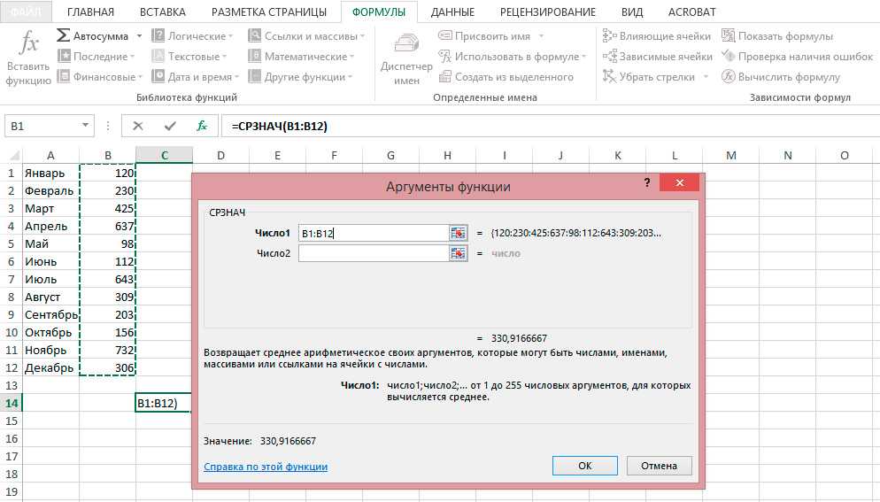 Статистическая функция СРЗНАЧ возвращает среднее арифметическое своих аргументов.