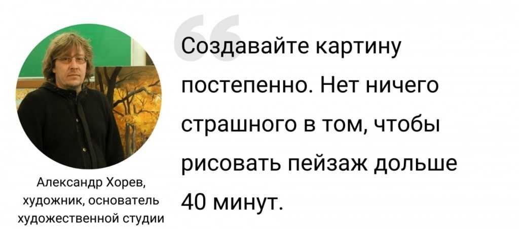 Он советует начинающим не использовать черный и белый цвета пока они не научаться смешивать цвета для получения желаемого результата.