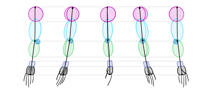 Также важно понимать, что когда поднимаются руки, поднимаются также и плечи. Поэтому не рисуйте персонажа с прямыми плечами при поднятых вверх руках
