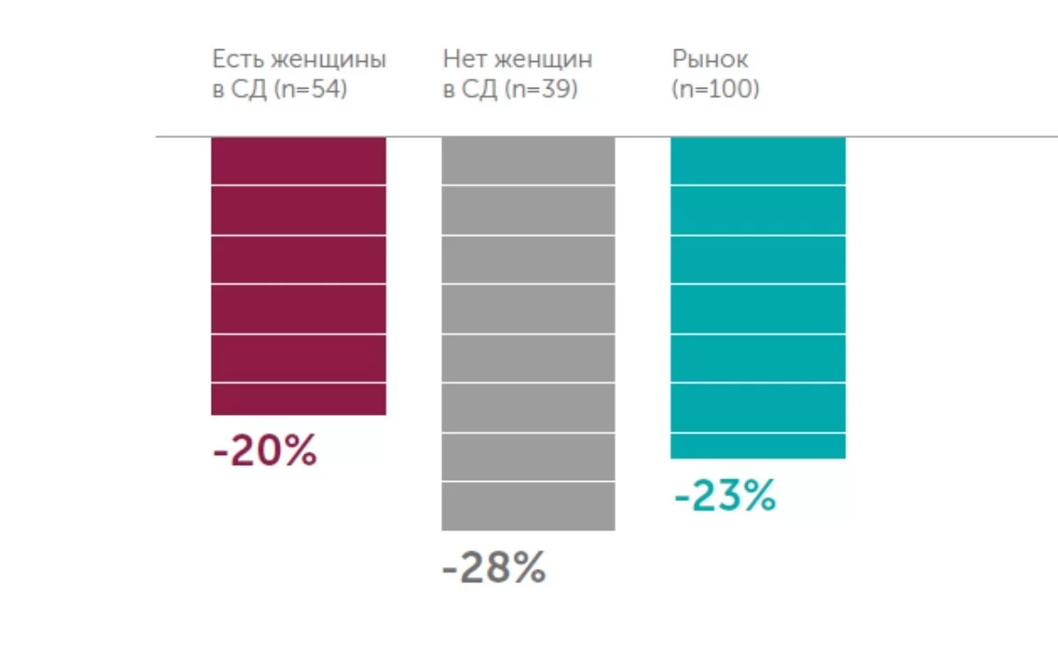 Разный состав группы улучшает ее продуктивность. По результатам исследования womanonoards, команды со смешанными составами на стратегическом уровне управления способствуют более активному росту стоимости бизнеса, либо сдерживают падение в периоды кризиса