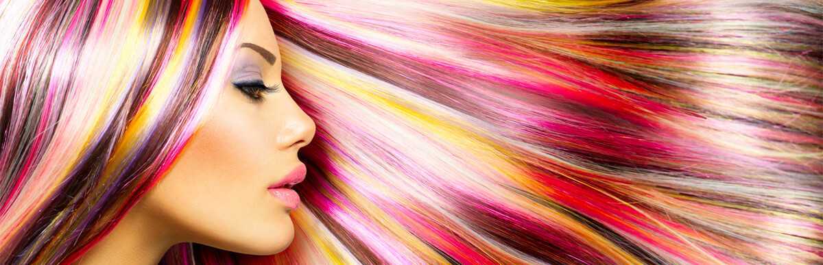 Цветное и «языки пламени» — применяются очень яркие краски – красный, голубой, зеленый и другие. Для создания языков пламени корни должны быть черные или очень темные, а кончики красные, нужен плавный переход.