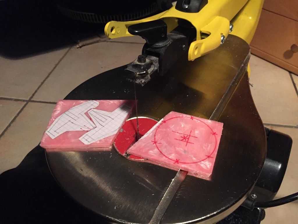 Я нарисовал юлу, состоящую из 3-х частей и приклеил шаблон к блоку. Затем, разрезал все фигуры по линиям с помощью лобзика и отшлифовал вручную все края.