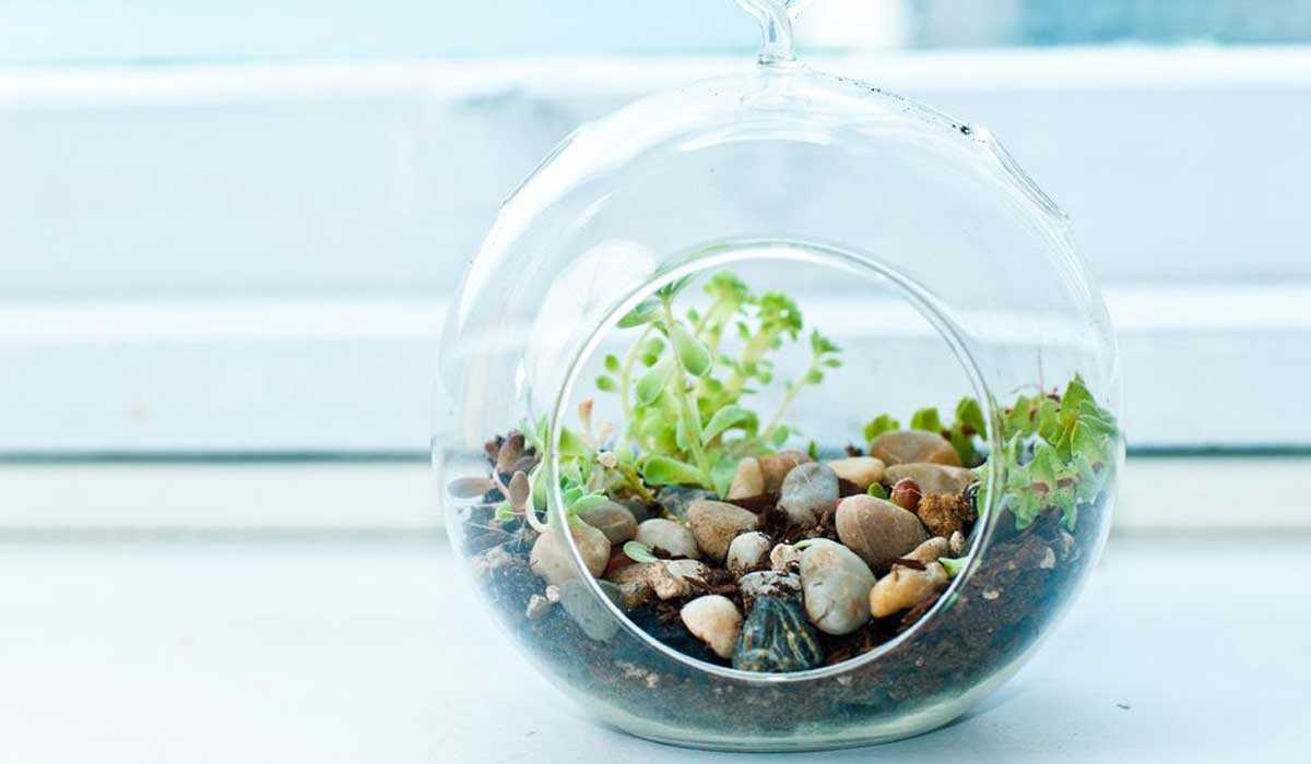 Растительный террариум получил название флорариум. Можно осуществить выращивание растений в бутылке или банке. Такая цветочная композиция занимает совсем мало места, но выглядит эффектно.
