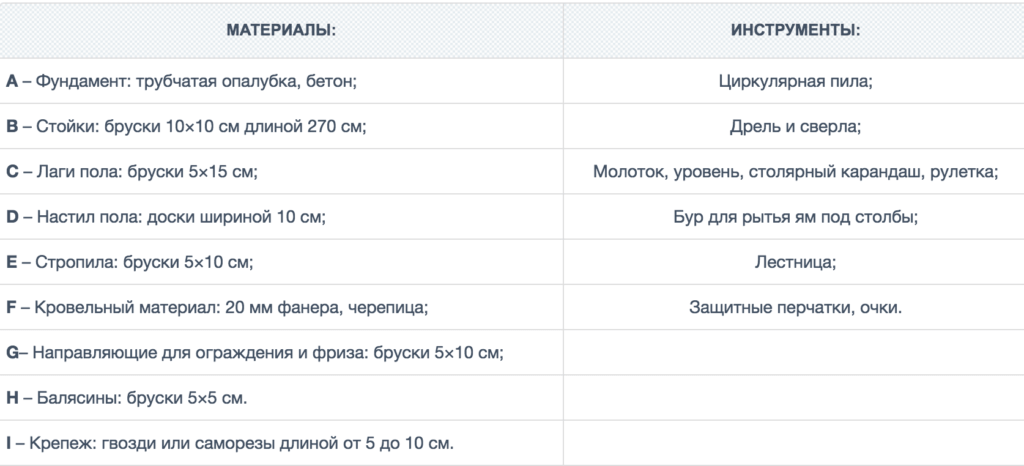В общем же, для строительства восьмигранной беседки Вам понадобятся материалы и инструменты, представленные далее.