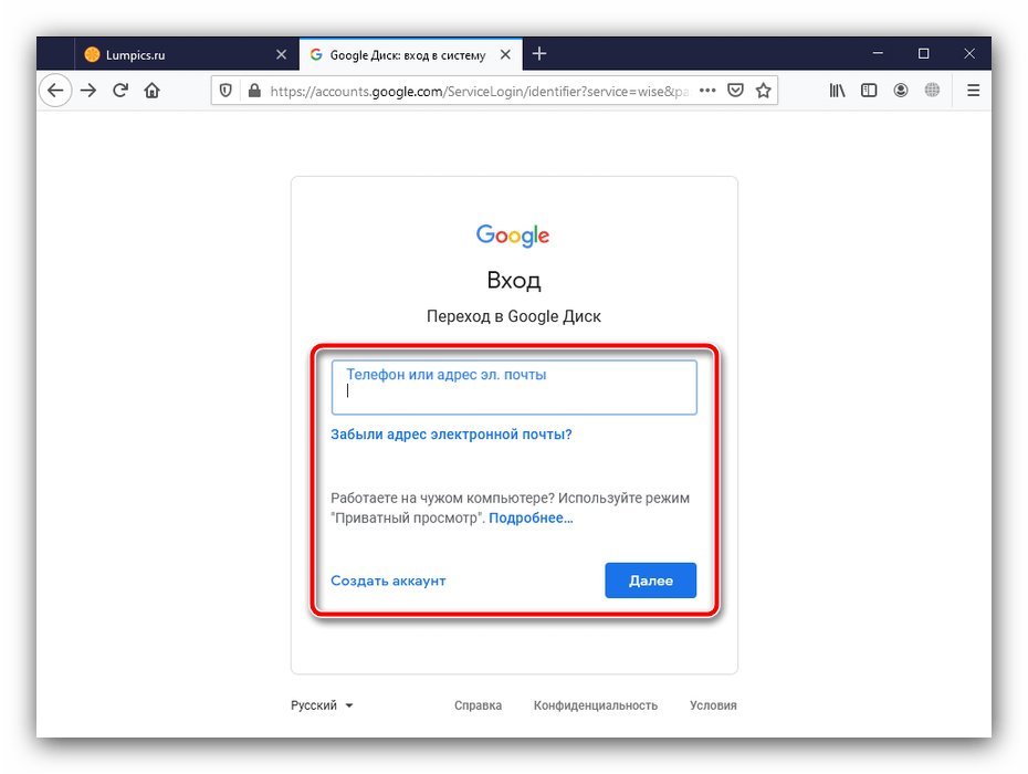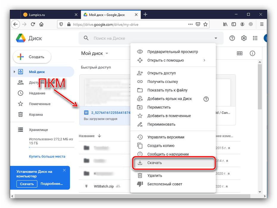 Получить данные из Гугл Диска на компьютере можно с помощью веб-версии сервиса, ссылка для открытия которой находится ниже.