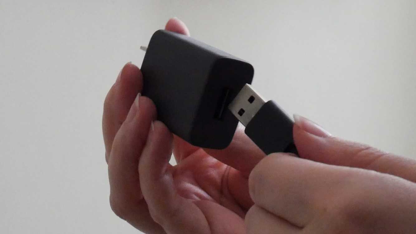 Затем вставьте обычный конец USB в сетевой адаптер и подключите его к розетке.