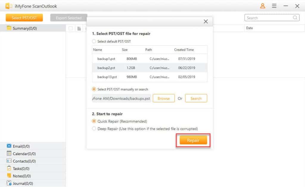 Как восстановить и перезапустить Outlook с помощью iMyFone ScanOutlook?
