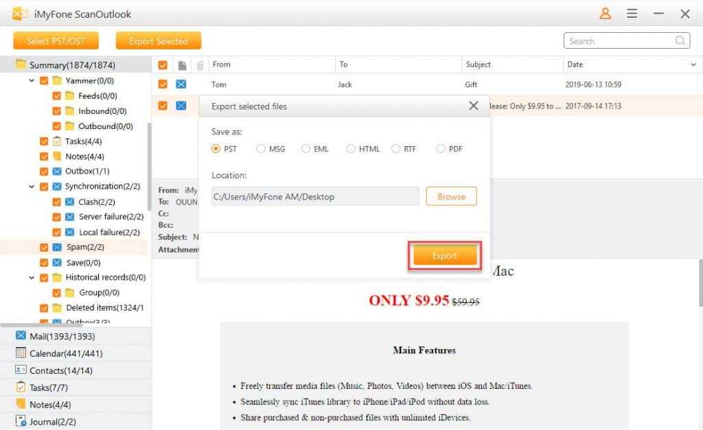 Основные особенности, связанные с iMyFone ScanOutlook