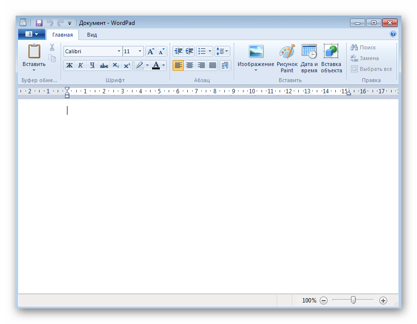 WordPad — более продвинутая версия рассмотренного выше текстового редактора, которая тоже по умолчанию установлена в Windows 7 и подходит для создания документа. Алгоритм действий при этом практически не меняется.
