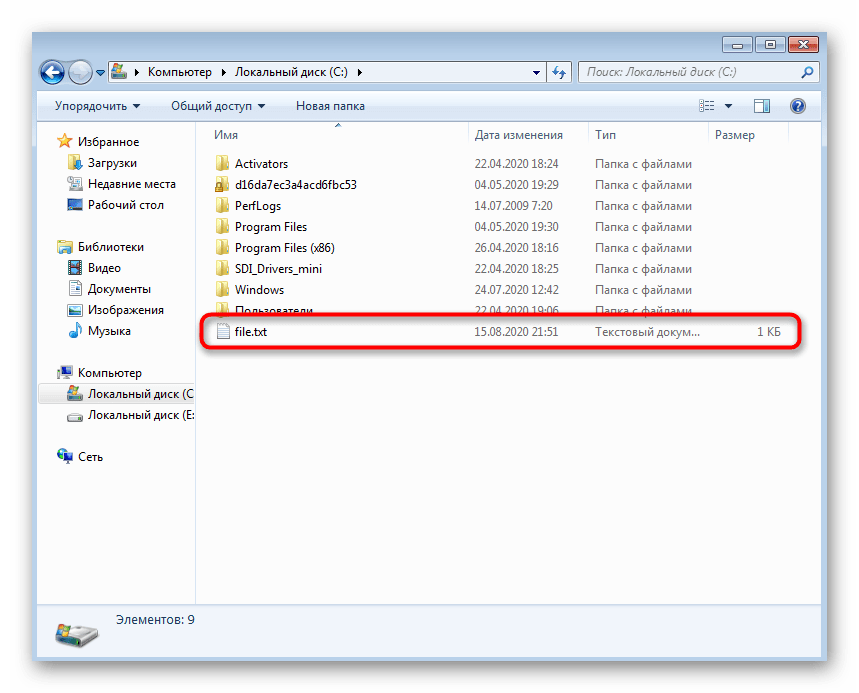 Введите , где c:\ — расположение файла, а file.txt — сам текстовый документ. Нажмите Enter для подтверждения команды.