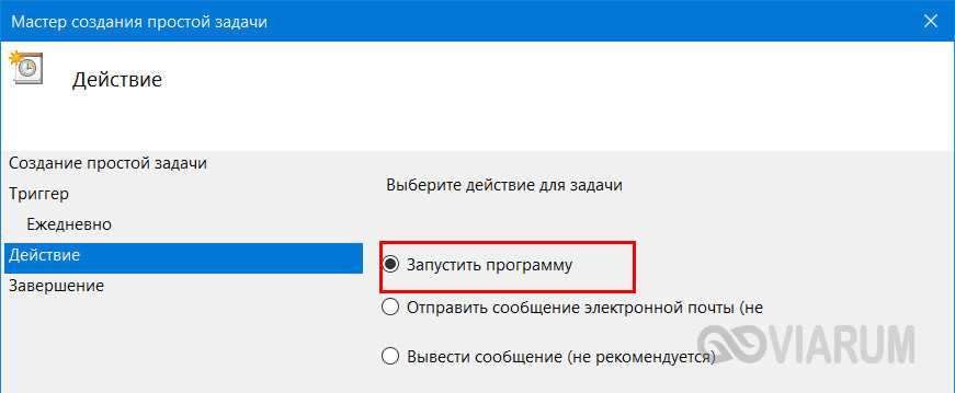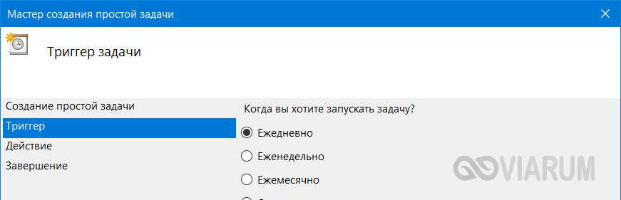 - Используя настройку «Начать», укажите день и время запуска задачи.