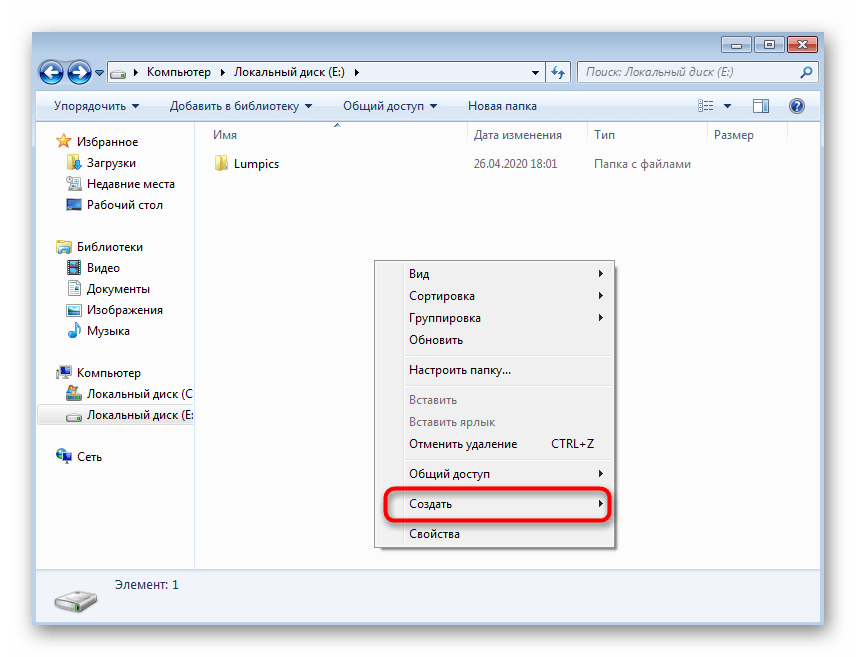 Самый простой метод создания текстового документа в Windows 7 — использование контекстного меню «Проводника». Как известно, там есть отдельная функция под названием «Создать», которой и понадобится воспользоваться, а весь процесс выглядит следующим образом: